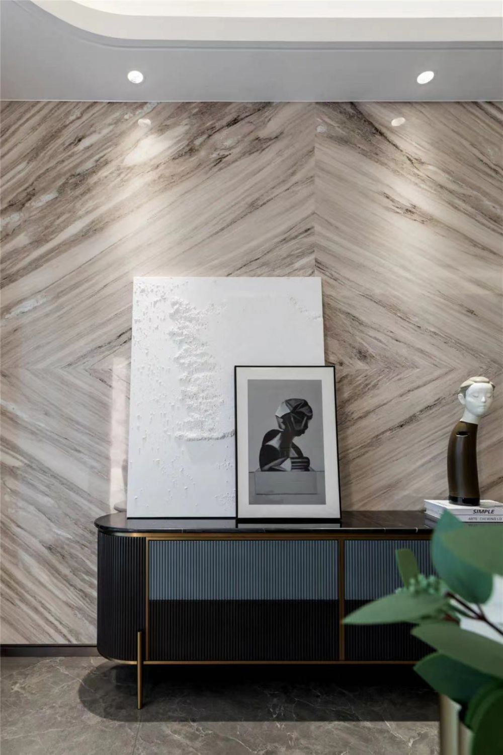 客廳以極具質(zhì)感的紋理大理石為主,配合金屬邊鑲嵌的深色置物柜,在低調(diào)內(nèi)斂中體現(xiàn)奢華的本質(zhì)。這里日常忙碌的背影是生活中最無可替代的溫馨。