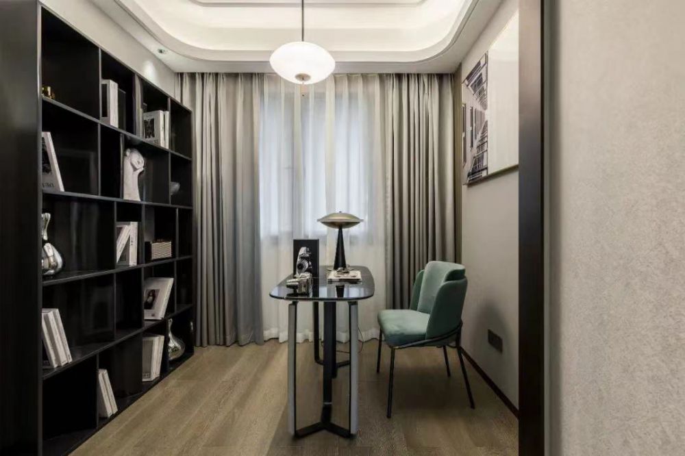 書房是靈感和內(nèi)心安定所在,鍍鉻金屬搭配黑白色彩,無不凸顯港式輕奢設計的精髓。咖啡與陽光,會不經(jīng)意的想起某些往事,哼出心中的旋律…
