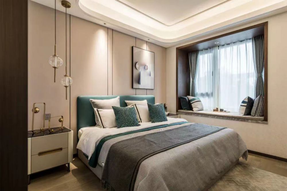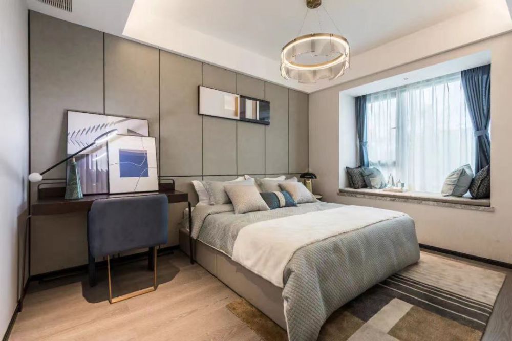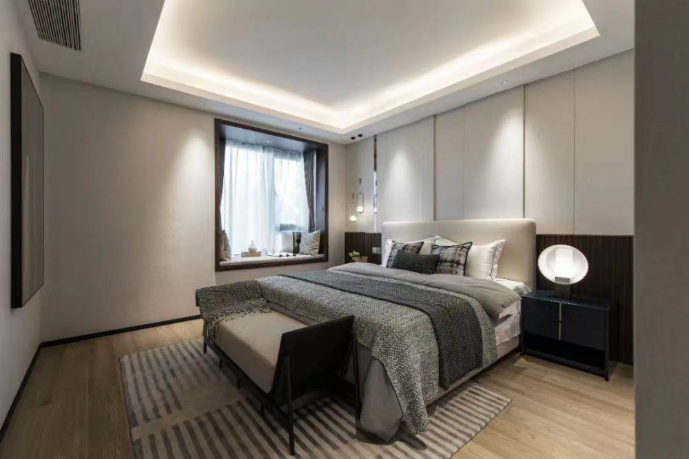 臥室空間的設計中,現(xiàn)代建筑設計中的簡明線條隨處可見,家具細節(jié)處的自然弧度,使得整體空間更加細膩和精致。