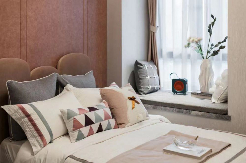 臥室氛圍更為放松休閑,繁忙工作下也要享受生活,閑暇之余躺在床上或臥榻窗臺,棕色系材質(zhì)的融入為空間增添生活氣息。