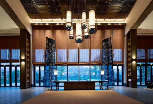 丹寨萬(wàn)達(dá)錦華溫泉酒店設(shè)計(jì)風(fēng)格凝練了非物質(zhì)文化遺產(chǎn)精華,包括當(dāng)?shù)氐南炄舅囆g(shù)、鳥(niǎo)籠文化、古法造紙、以及傳承百年的錦雞舞蹈元素,整體構(gòu)思以“依山傍水觀魚(yú)舞,沿岸穿林聽(tīng)樹(shù)濤”為設(shè)計(jì)理念、將簡(jiǎn)約度假風(fēng)格與苗寨村落形式相結(jié)合,讓來(lái)往的游客可以體驗(yàn)到親切的“苗族風(fēng)情”。