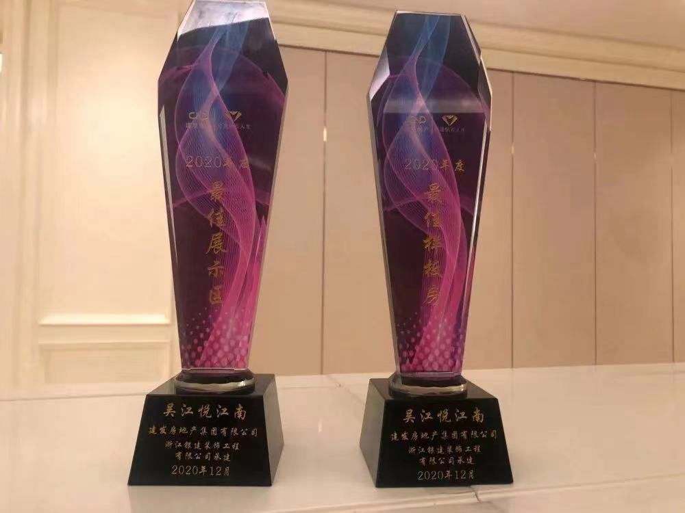建發(fā)悅江南,擇址蘇州灣心,對望吳江中學(xué),于太湖山水縈繞之中,打造當(dāng)代新中式湖居院墅。項(xiàng)目總建面積約21萬㎡,以低容積率,規(guī)劃院落疊墅、園景洋房兩類產(chǎn)品,以東方手筆重構(gòu)建筑與城市關(guān)系,三進(jìn)九境,五坊七巷,為仕商家族匠造新中式美學(xué)范本。悅江南售樓中心由銀建七分公司團(tuán)隊(duì)打造,銀建人克服重重困難出色的完成了施工任務(wù),2021年1月18日由蘇州城市公司設(shè)計(jì)總部為銀建人頒發(fā)了“2020年度最佳展示區(qū)”“2020年最佳樣板房”兩座獎杯!
